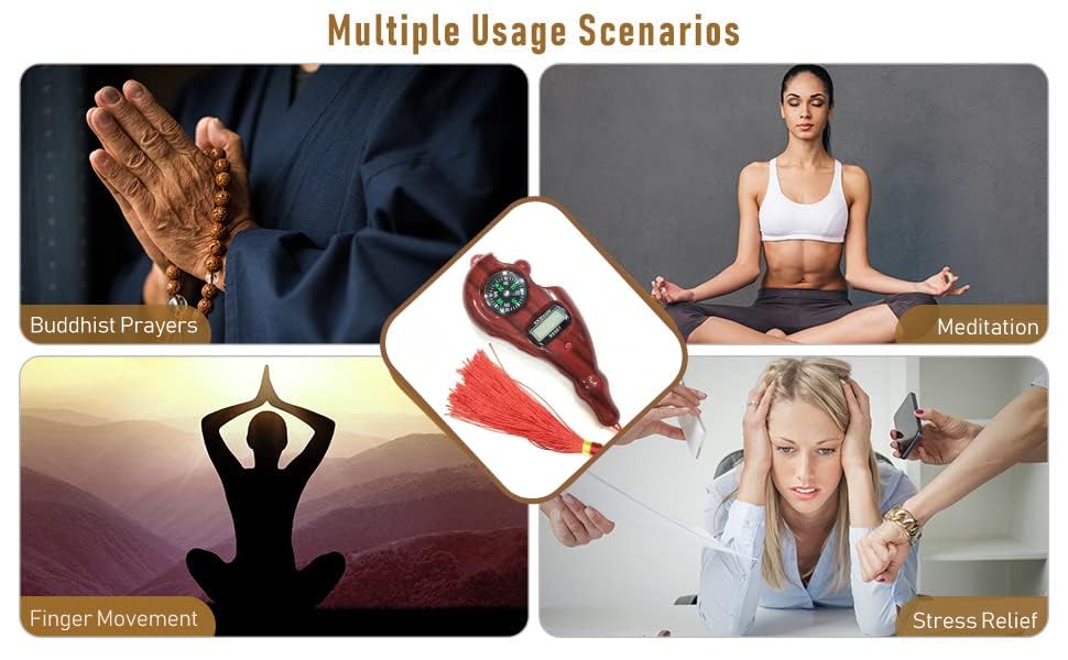 Manual Hand Finger Digital Counting Machine : Digital Finger Rotating Prayer Beads with Compass, Digital Counter Islamic Muslim Buddha Tasbih Hindu mala Mantra jap and God name. Scroll count and low-noise operation. Scroll down the thumb to start counting with the smooth roller. Automatic with Statistical reading, automatic power off and the counter can be cleared to zero. It is made of ABS plastic material with good resistance to falling, durable material. Mini sized counter is light weight, so it is easy to carry. This Tasbeeh counter is used for dhikr or zikr, which is the remembrance of Allah. Enough Screen display more clearly, supports one-key reset that you can count the beads start over. Used for all kinds of meditation relaxation, decompression, active fingers, god name remember etc.