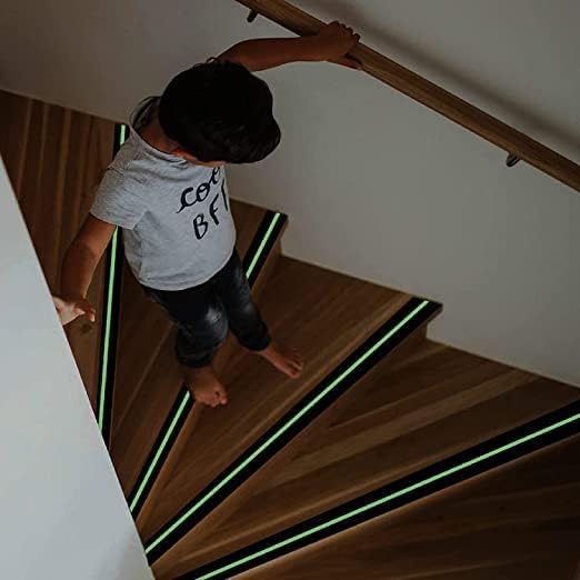 GLOW IN DARK - This Luminous Traction Tape Glows in Dark, So You Won’t Miss Any Step Even at Night. The Rough Article Surface of Tape Enhances Great Friction to Avoid Slipping and Protect the Glowing Part from Abrasion, So as To Work for Long Service Term.