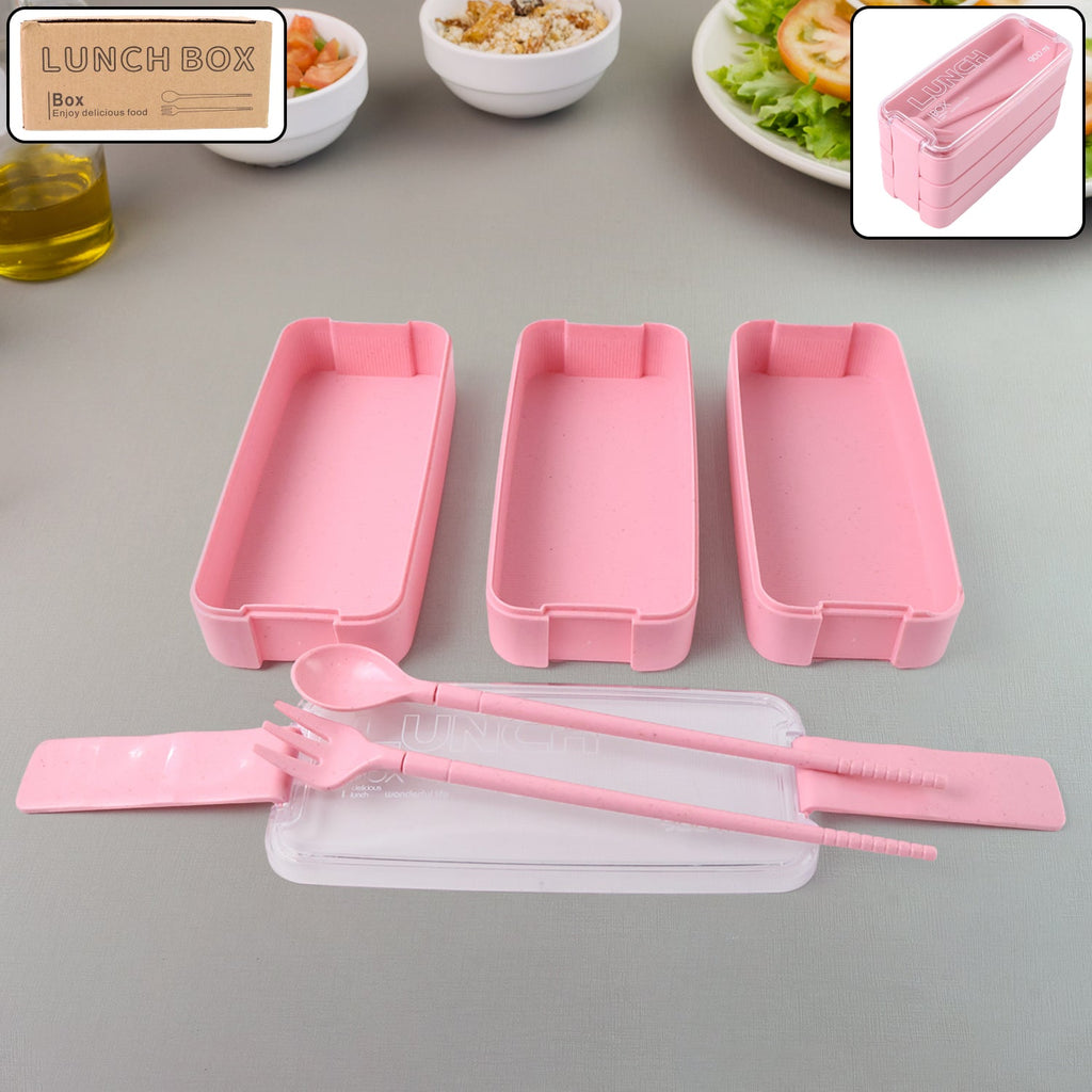 Eco-Friendly 3-Layer Stackable Lunch Box Set with Cutlery – Lightweight BPA-Free Portable Tiffin Box for Office, School & Travel