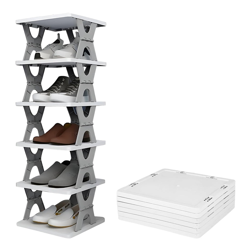 SMART SHOE RACK, SHOES STAND MULTIFUNCTIONAL ENTRYWAY FOLDABLE & COLLAPSIBLE DOOR SHOE RACK FREE STANDING HEAVY DUTY PLASTIC SHOE SHELF STORAGE ORGANIZER NARROW FOOTWEAR HOME (1 PC, 6 LAYER)