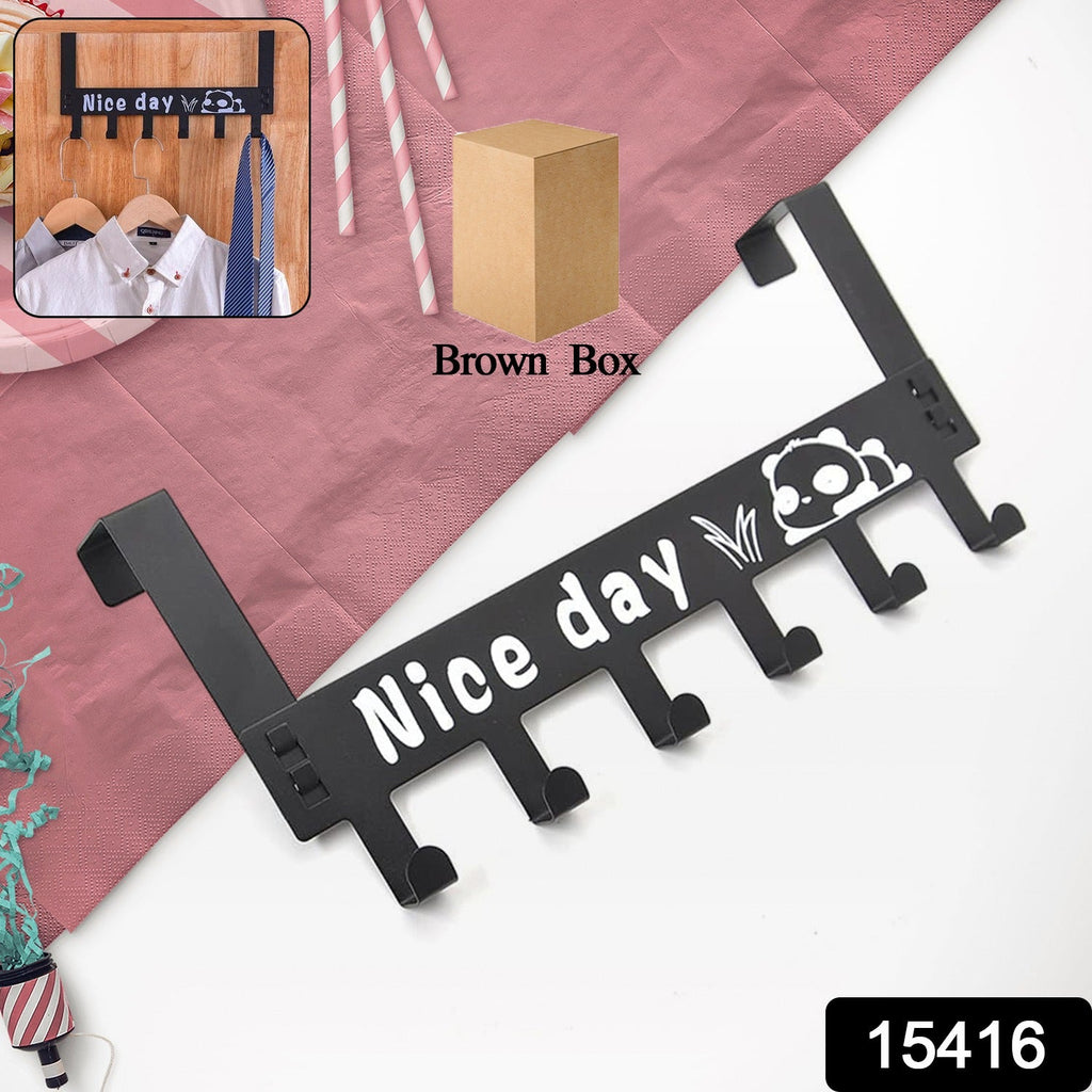 Heavy-Duty Carbon Steel Cartoon Nice Day Over Door Hook Hanger Rack, Towel Hanger, Removable Door Hook, Coat, Scarf, Cloths Hanger (1 pc / 6 Hook / Black Color)