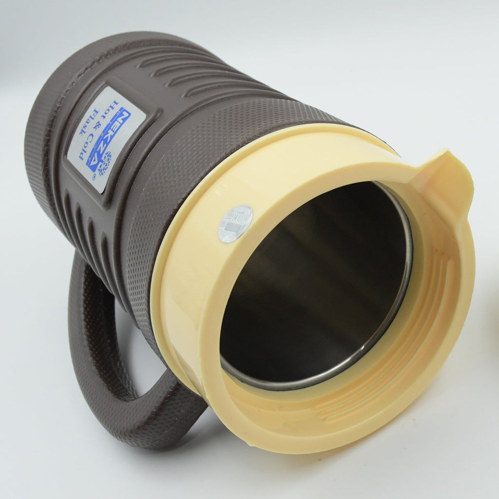 - Stainless steel on the inside for better temperature retention Out side Plastic Leak resistant to avoid spillage while travelling